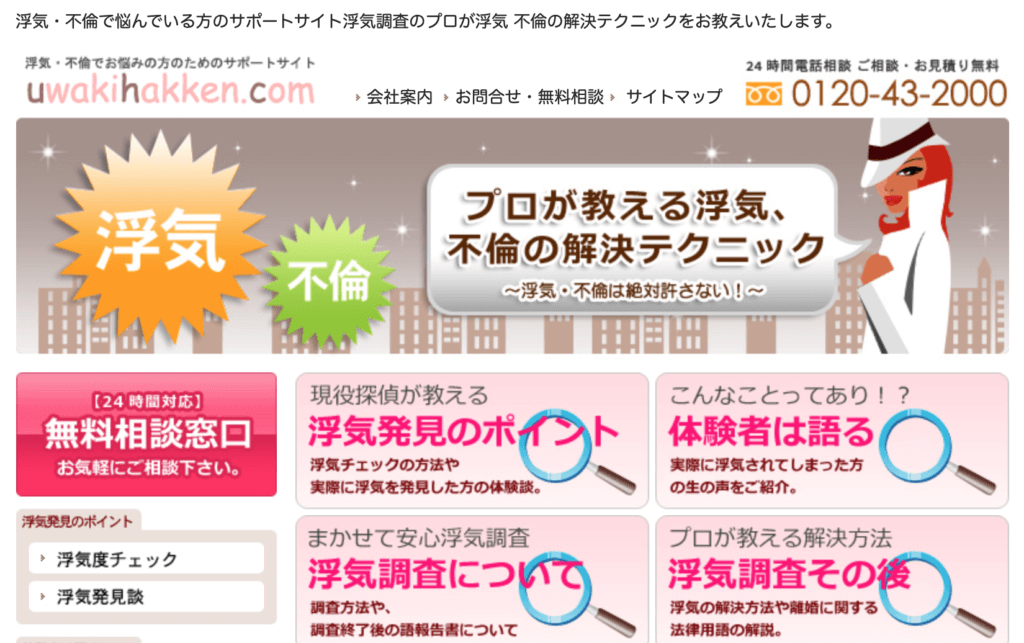 浮気調査に特に力を入れており、サイトには「不倫・浮気慰謝料チェッカー」などもあるので、浮気で悩んでいる人はぜひ一度チェック。