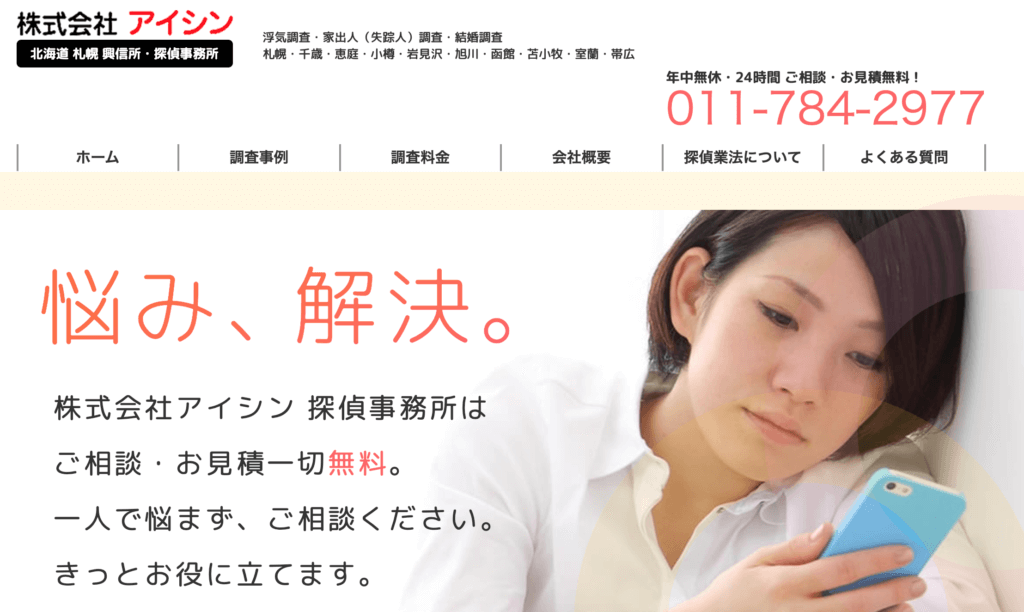 | 総合探偵社アイグエージェンシー | 北海道札幌市中央区北2条西2丁目3-2 第37桂和ビル5F |