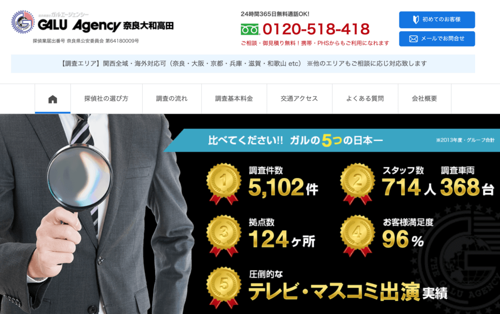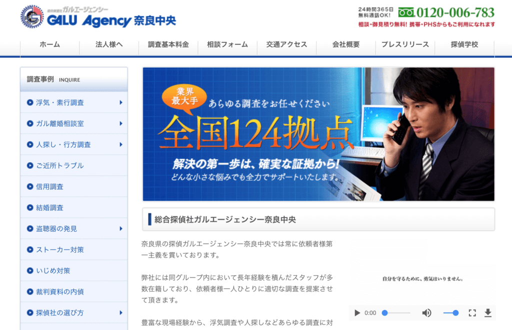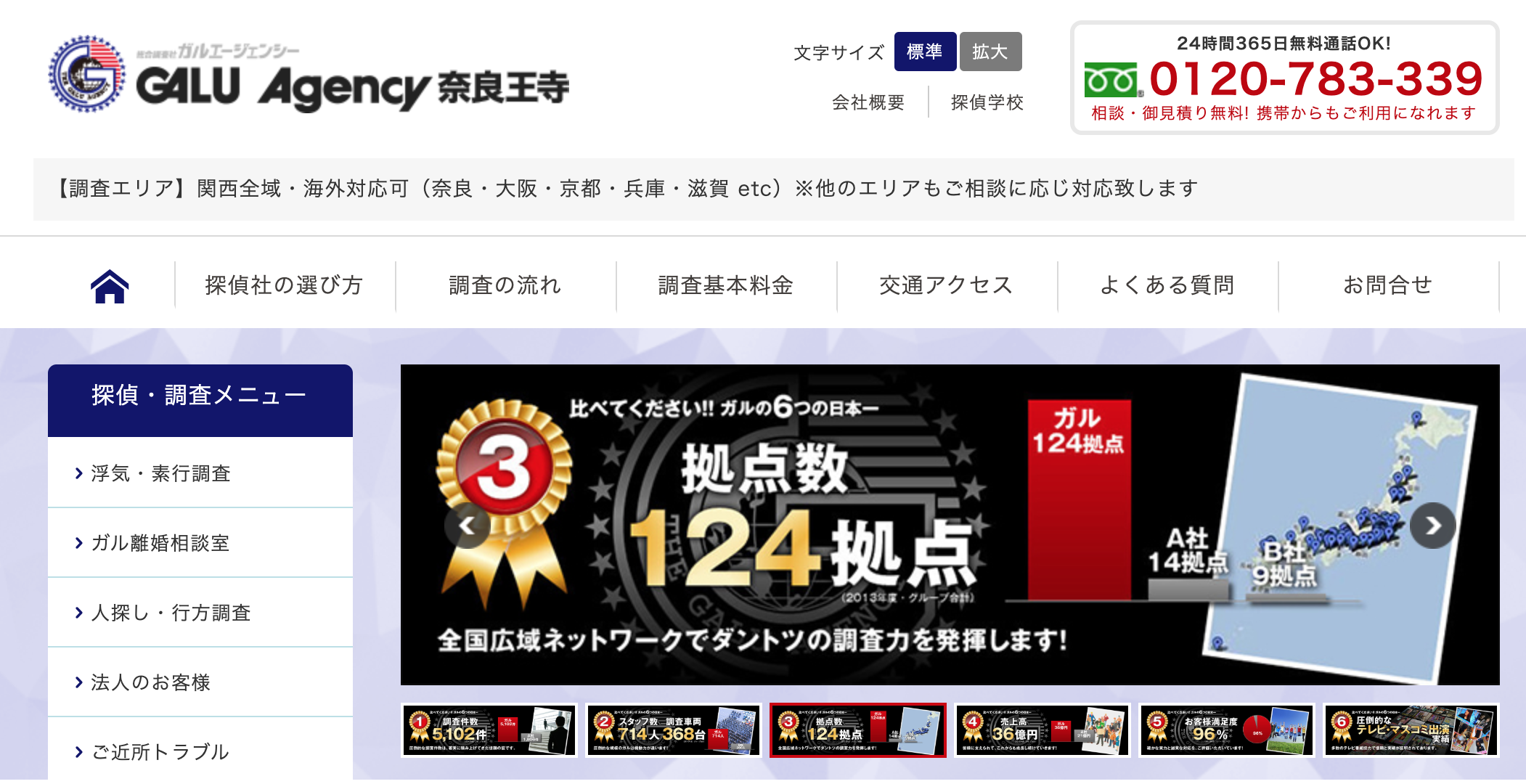 ガルエージェンシーは全国124支局を有する探偵事務所。奈良では奈良市に拠点を構えています。