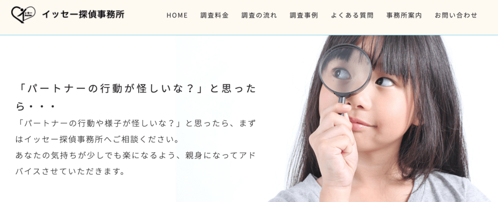 浮気調査に特に力を入れており、サイトには「不倫・浮気慰謝料チェッカー」などもあるので、浮気で悩んでいる人はぜひ一度チェック。