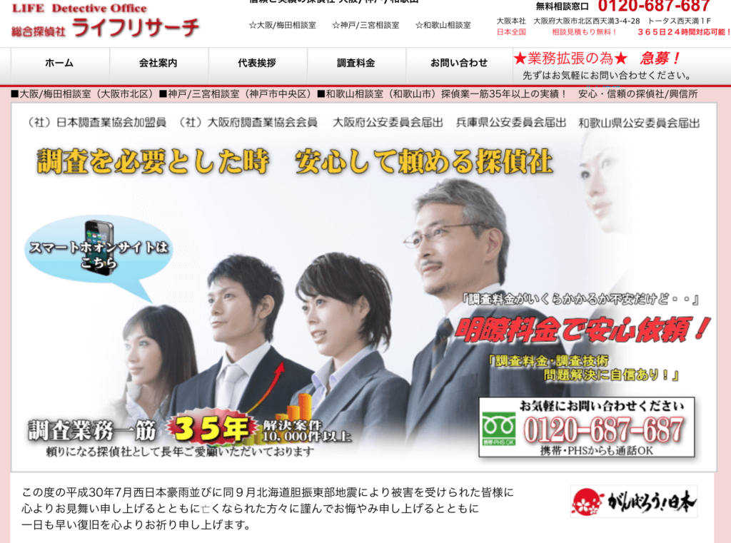 総合探偵社ライフリサーチは、大阪、神戸、和歌山に拠点を構える探偵事務所です。和歌山では和歌山市に拠点を構えています。