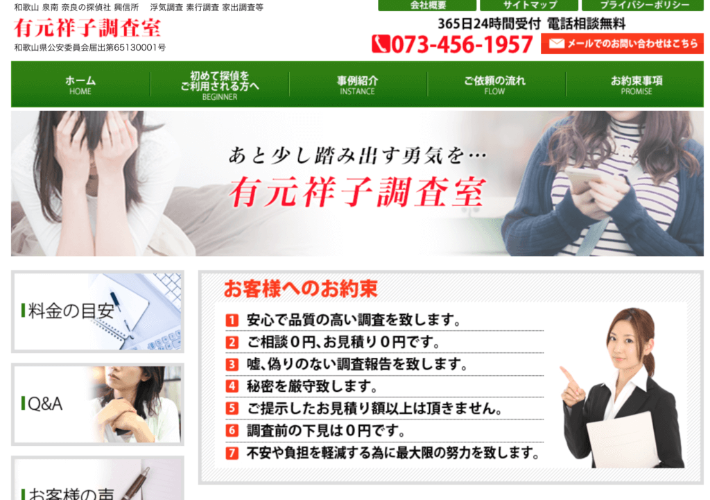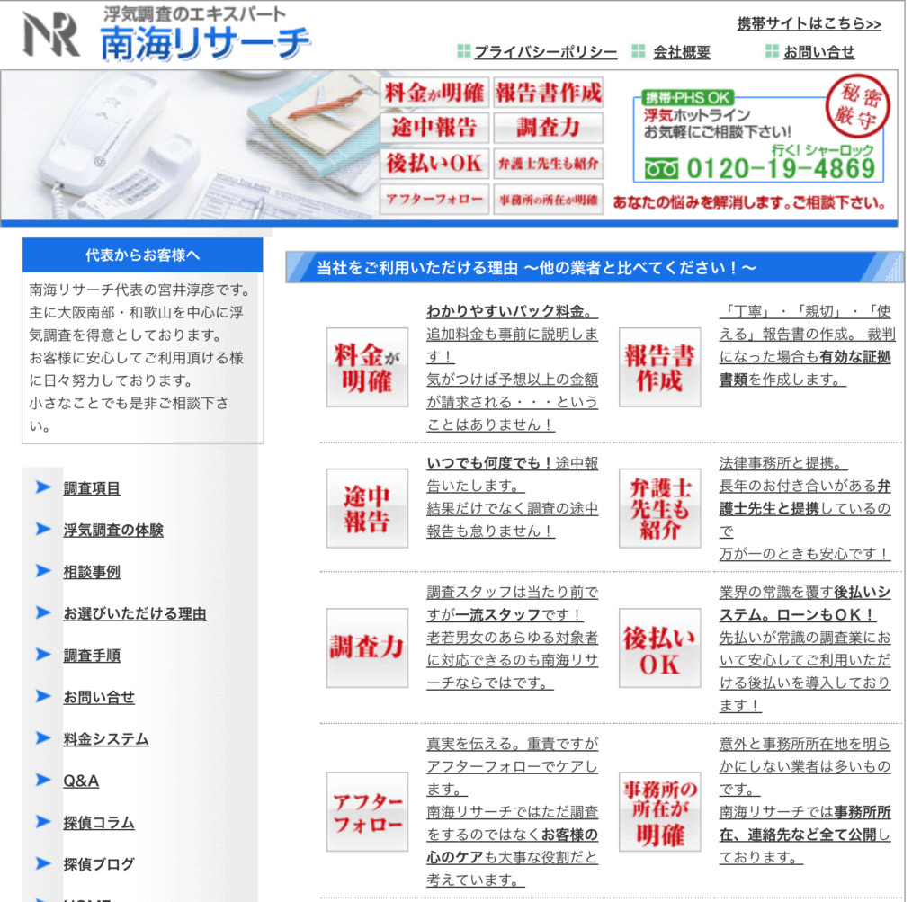 浮気調査に特に力を入れており、サイトには「不倫・浮気慰謝料チェッカー」などもあるので、浮気で悩んでいる人はぜひ一度チェック。