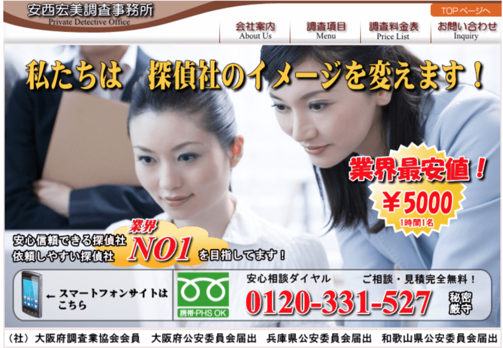• 探偵事務所は厳選審査に通った優良探偵社のみ